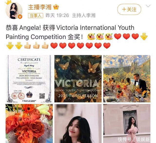 王诗龄获得英国“维多利亚国际青少年绘画大赛”金奖,李湘和王岳伦第一时间发微博为女儿庆祝,别说,这对离婚八百年的夫妻,在爱女儿这个面子活上,永远都挺同步的。